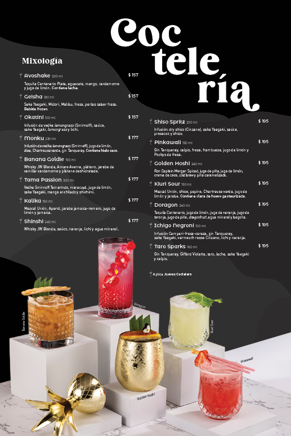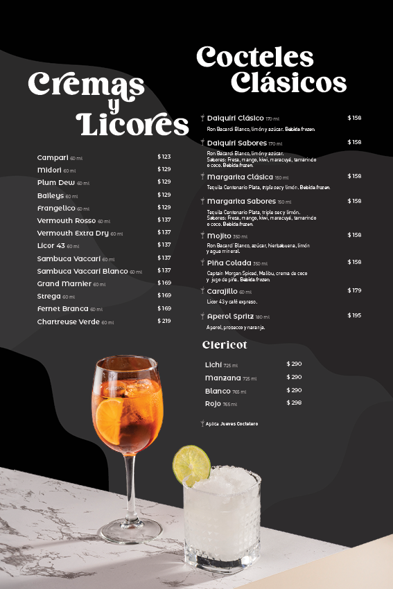 Consulta los detalles específicos de la promoción en la sucursal de tu elección. Recuerda consumir los cocteles de manera responsable.